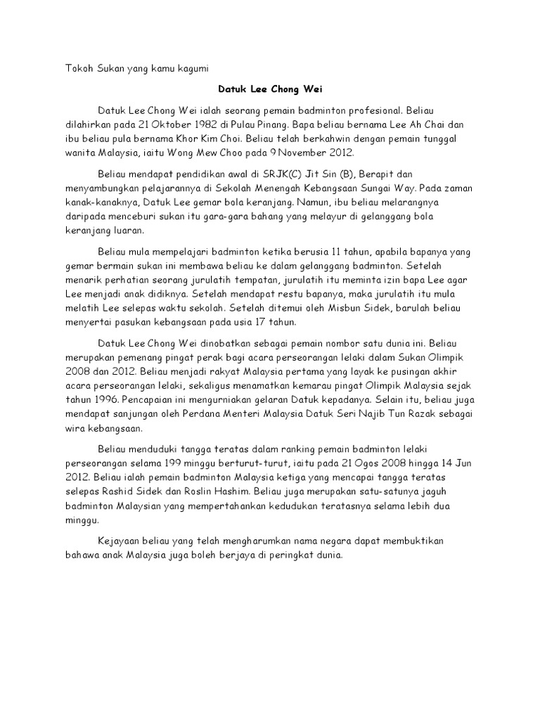 Tokoh Sukan Yang Kamu Kagumi Pdf
